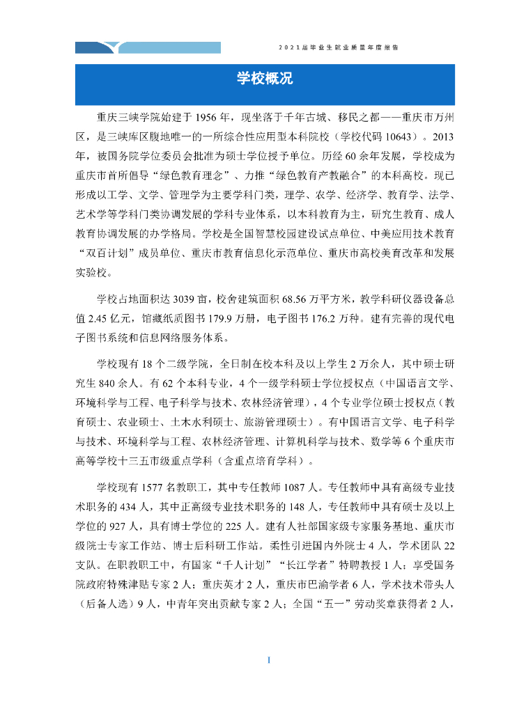 重庆三峡学院2021届毕业生就业质量报告.pdf