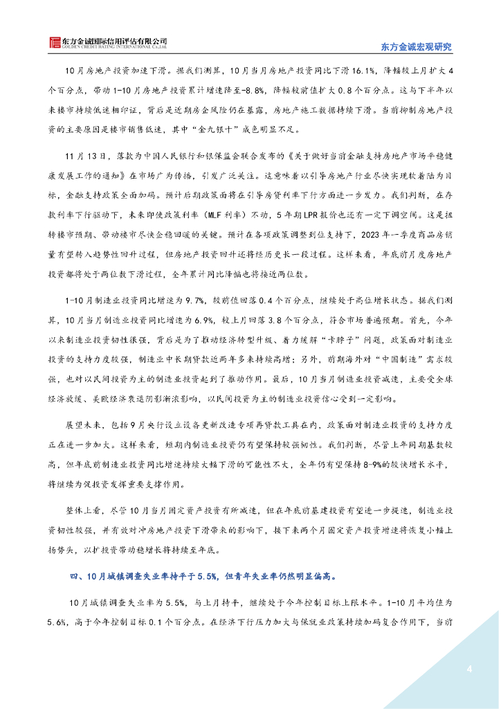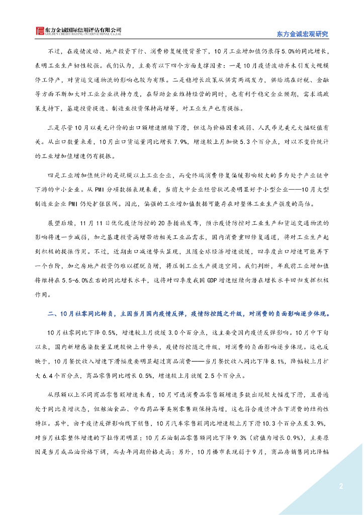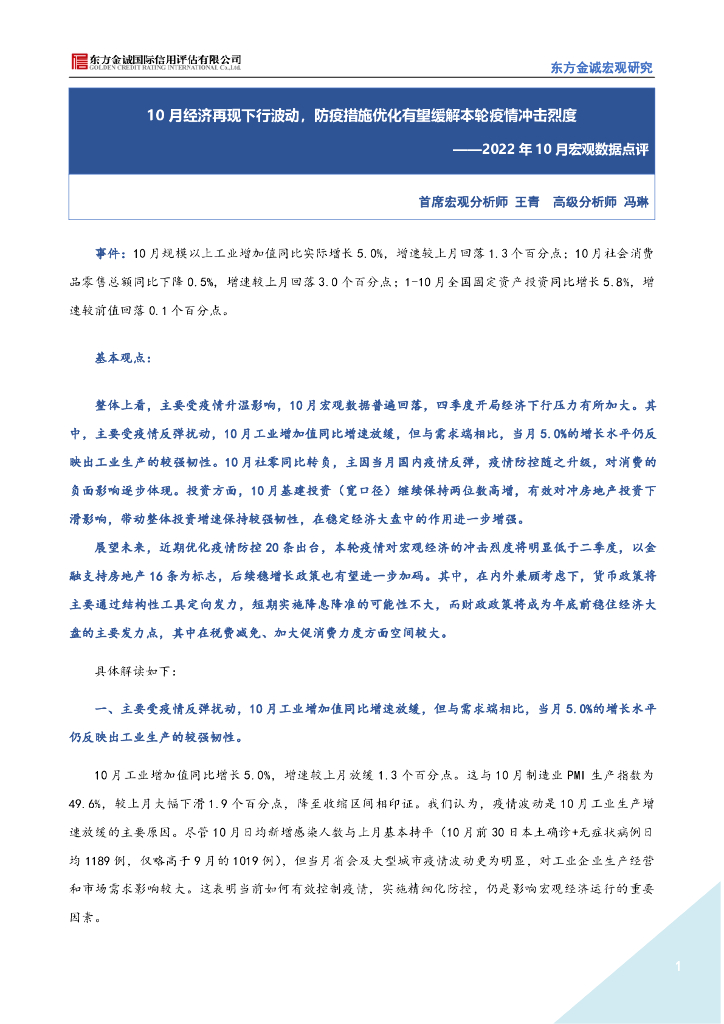 东方金诚2022年10月宏观数据点评:10月经济同现下行波动,防疫措施优化有望缓解本轮疫情冲击烈度琳.pdf
