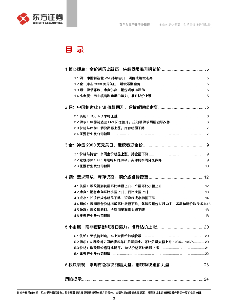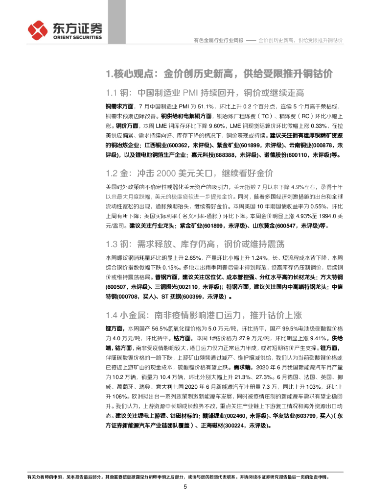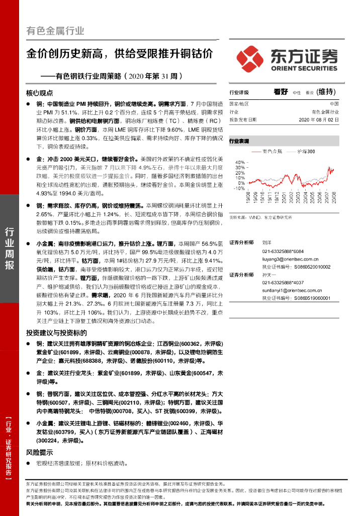 东方证券:有色钢铁行业周策略(2020年第31周):金价创历史新高,供给受限推升铜钴价.pdf