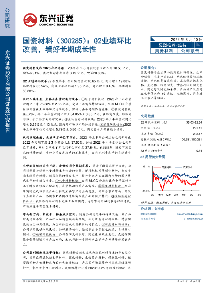 东兴证券:国瓷材料(300285)-Q2业绩环比改善,看好长期成长性.pdf