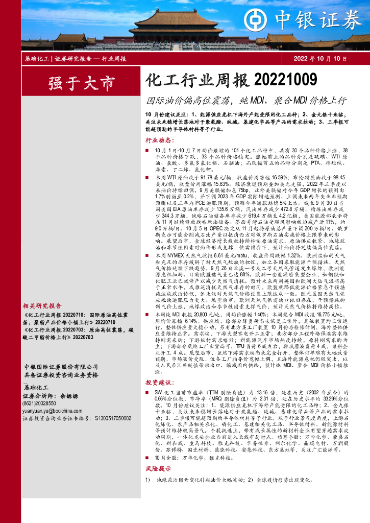 中银证券:化工行业周报:国际油价偏高位震荡,纯MDI、聚合MDI价格上行.pdf