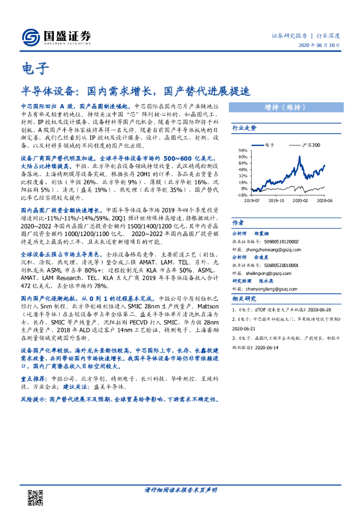国盛证券:电子行业深度:半导体设备:国内需求增长,国产替代进展提速.pdf