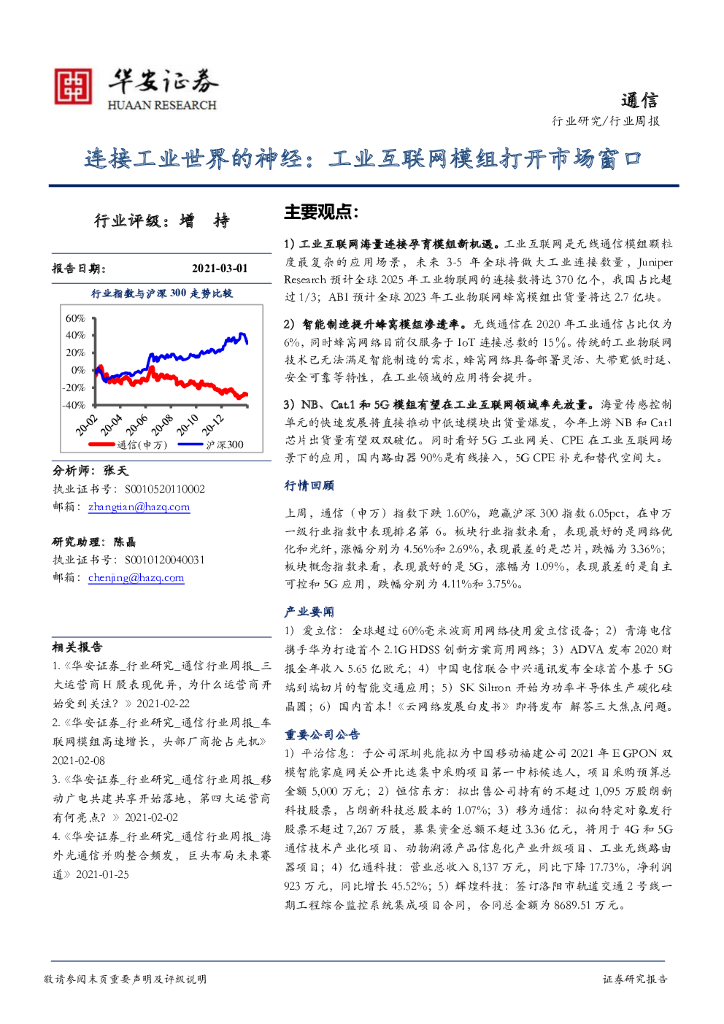 华安证券:通信行业周报:连接工业世界的神经:工业互联网模组打开市场窗口.pdf