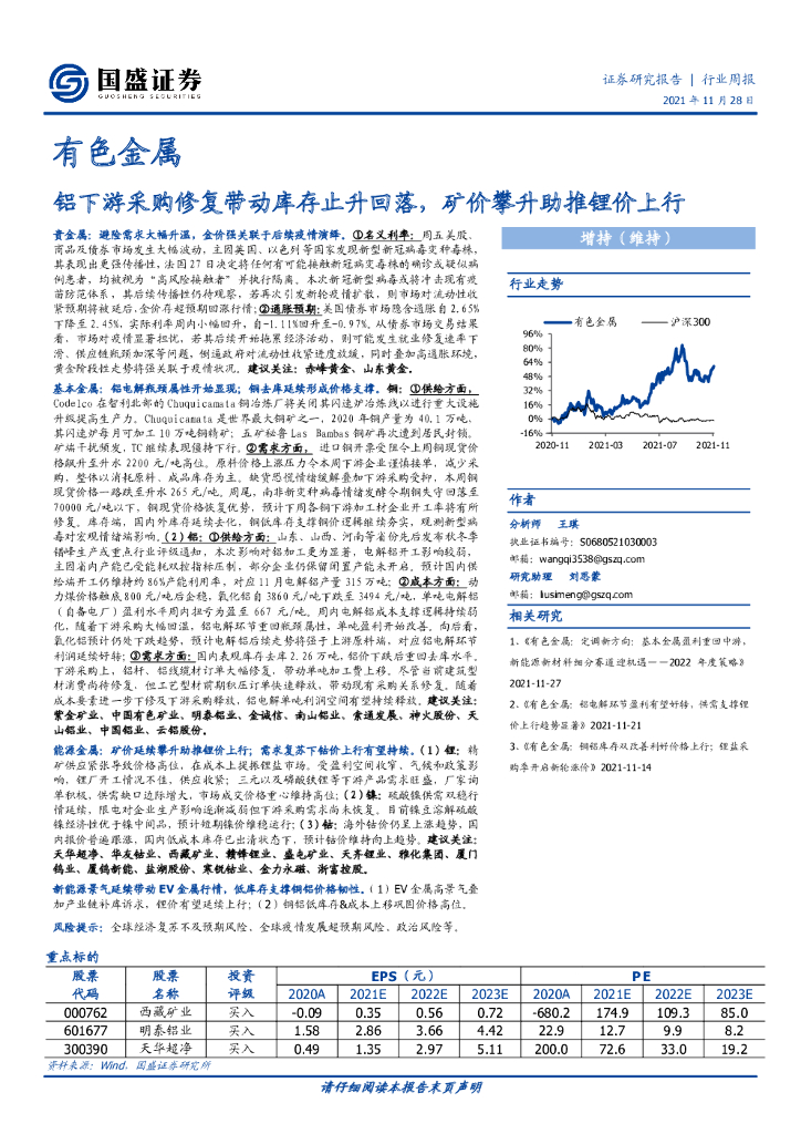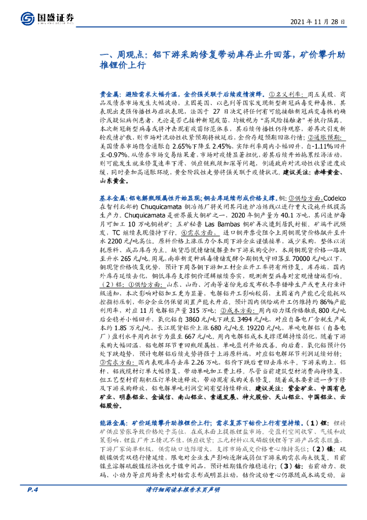 国盛证券:有色金属:铝下游采购修复带动库存止升回落,矿价攀升助推锂价上行.pdf