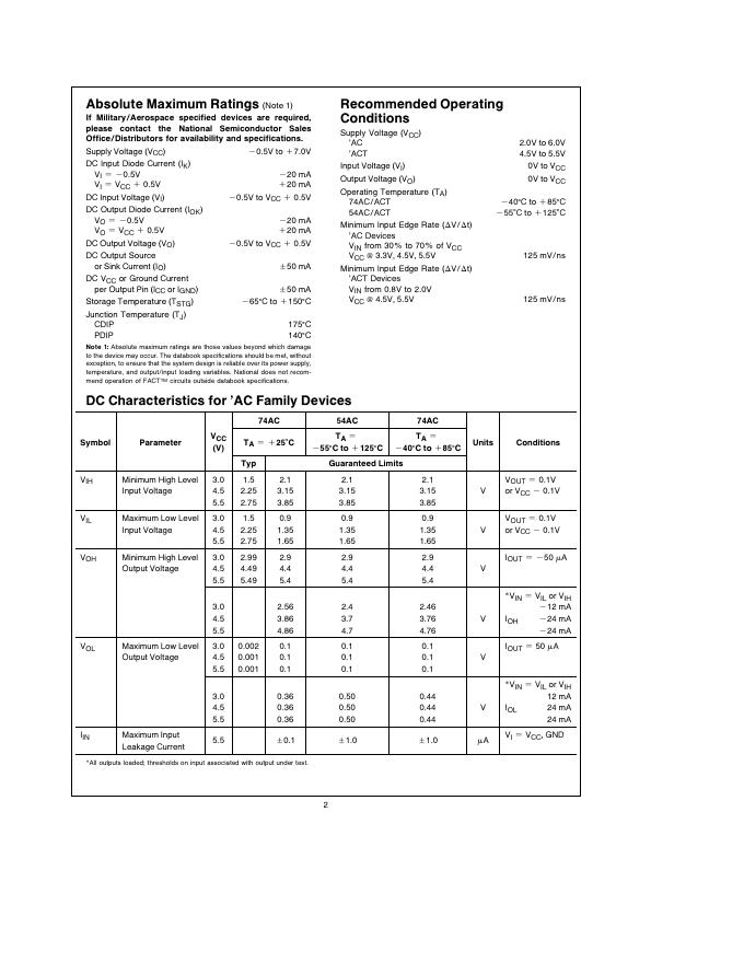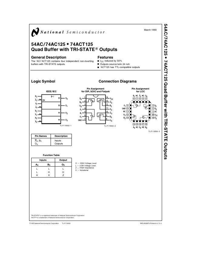 National Semiconductor 54AC/74AC125/74ACT125 数据手册.pdf