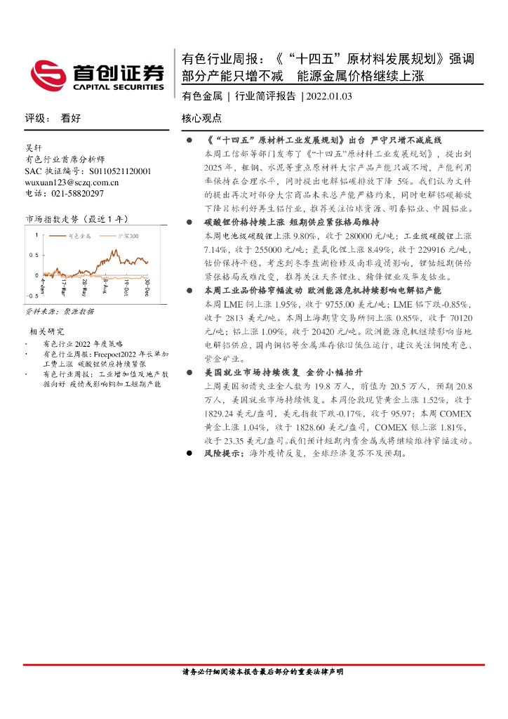 首创证券:有色行业周报:《“十四五”原材料发展规划》强调部分产能只增不减 能源金属价格继续上涨.pdf