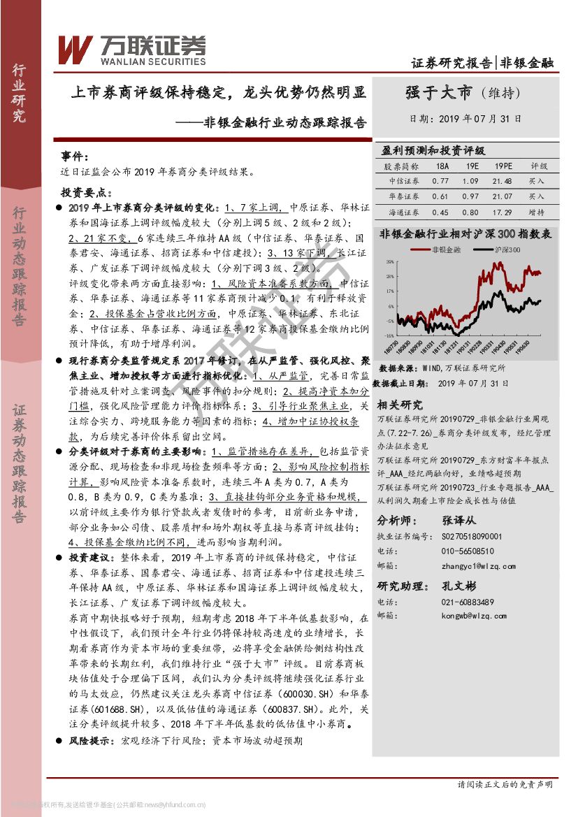 万联证券:非银金融行业动态跟踪报告:上市券商评级保持稳定,龙头优势仍然明显.pdf