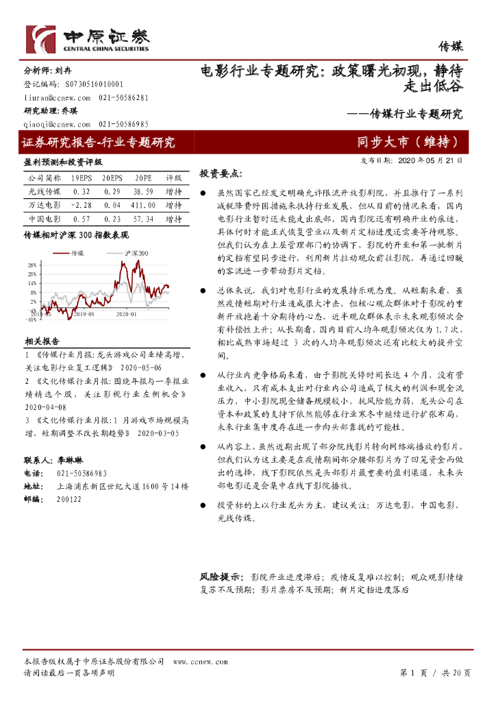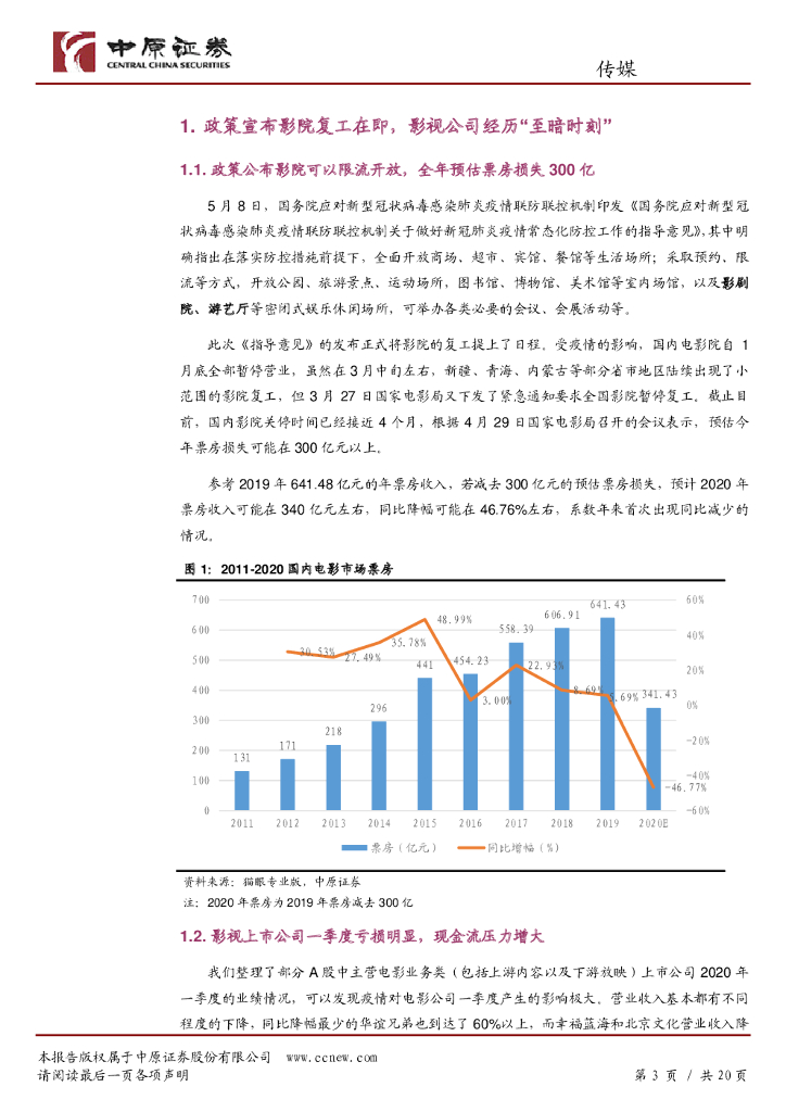 中原证券:传媒行业专题研究:电影行业专题研究:政策曙光初现,静待走出低谷.pdf