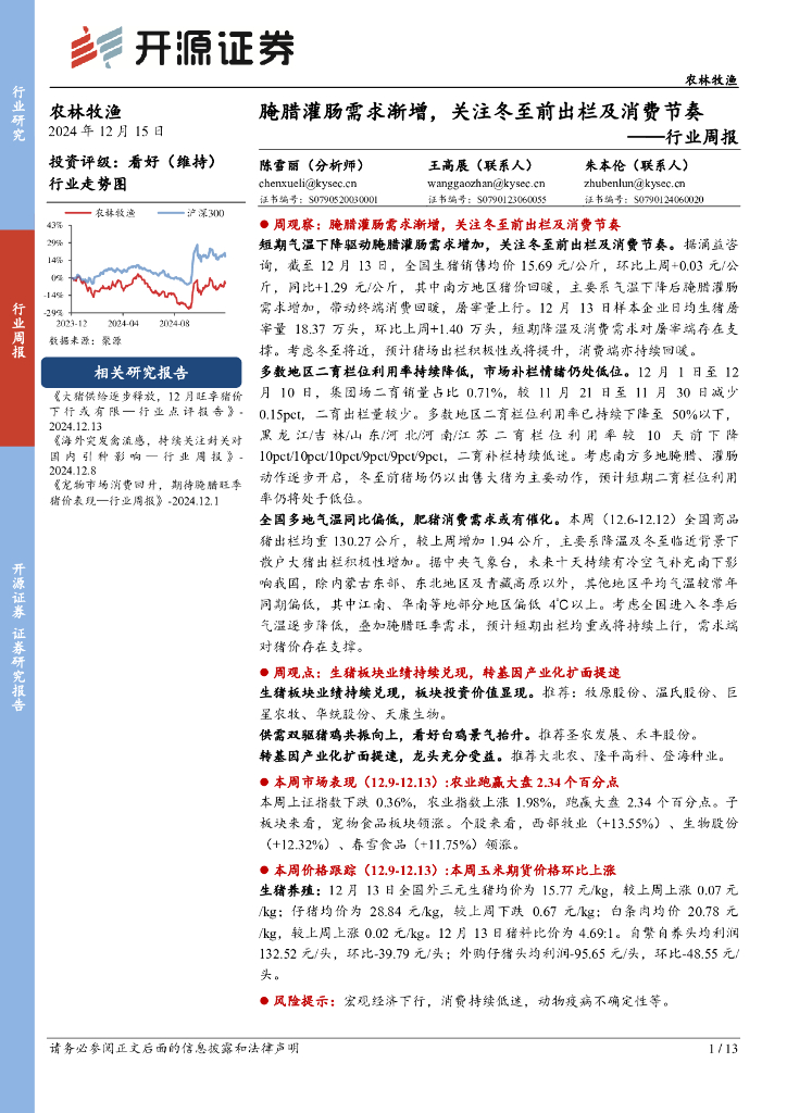 开源证券:农林牧渔行业周报:腌腊灌肠需求渐增,关注冬至前出栏及消费节奏.pdf