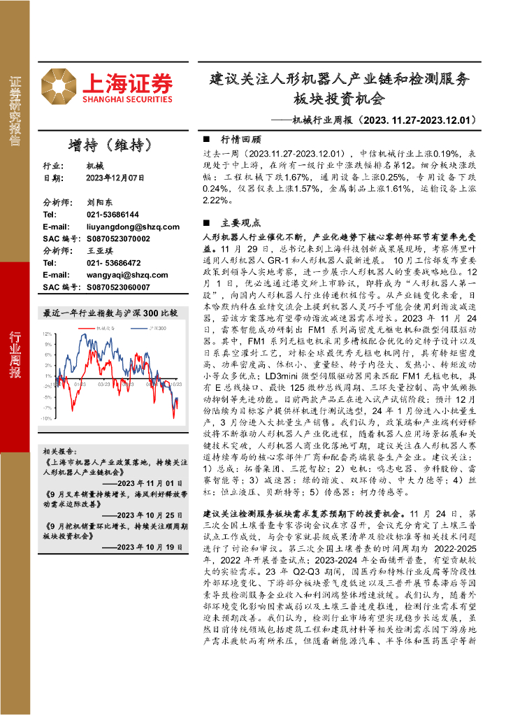 上海证券:机械行业周报:建议关注人形机器人产业链和检测服务板块投资机会.pdf