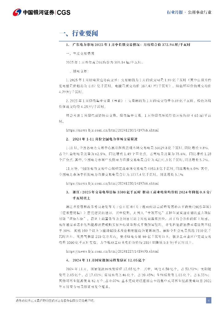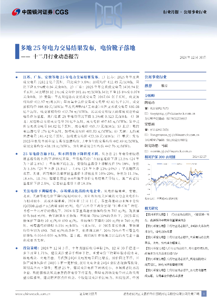 中国银河:公用事业行业十二月行业动态报告:多地25年电力交易结果发布,电价靴子落地.pdf