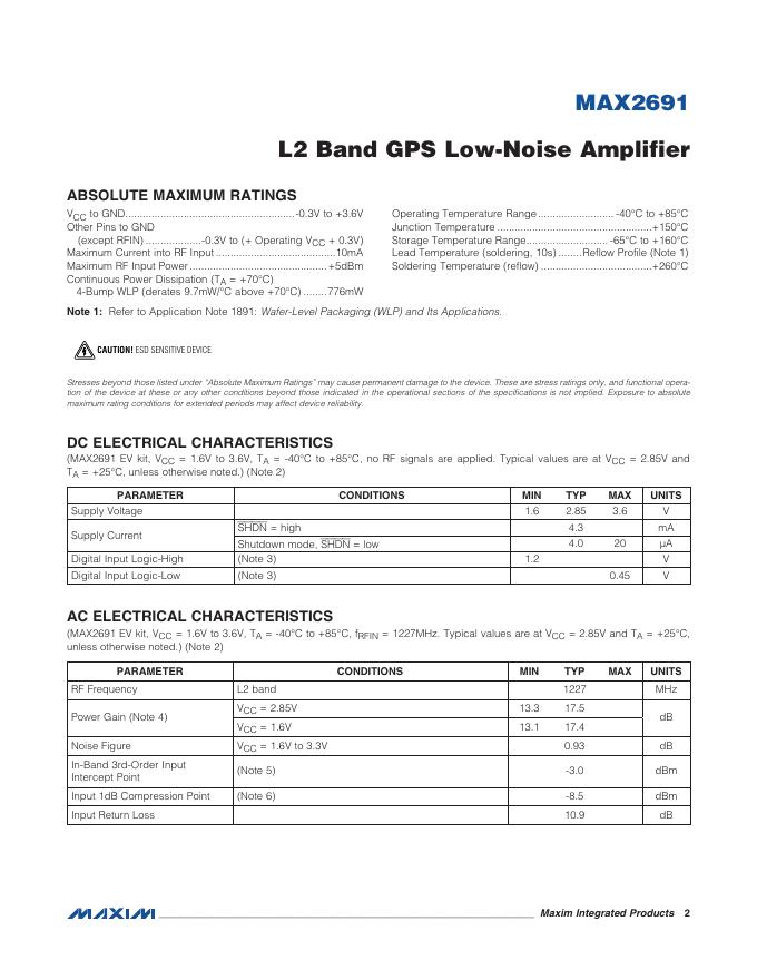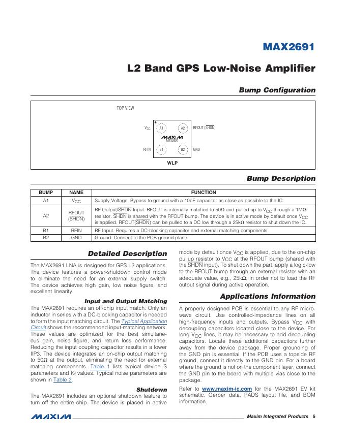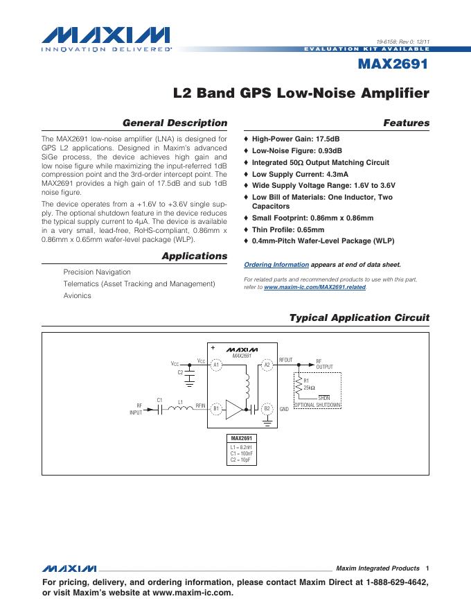 MAXIM MAX2691 L2 Band GPS Low-Noise Amplifier 数据手册.pdf