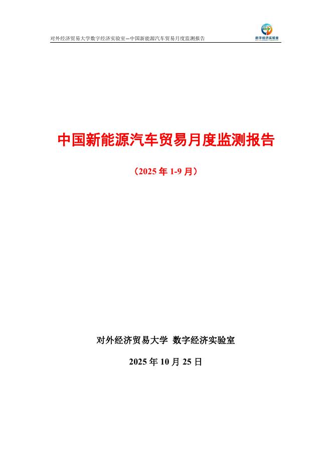 对外经济贸易大学:中国新能源汽车贸易月度监测报告(2025年1-9月).pdf