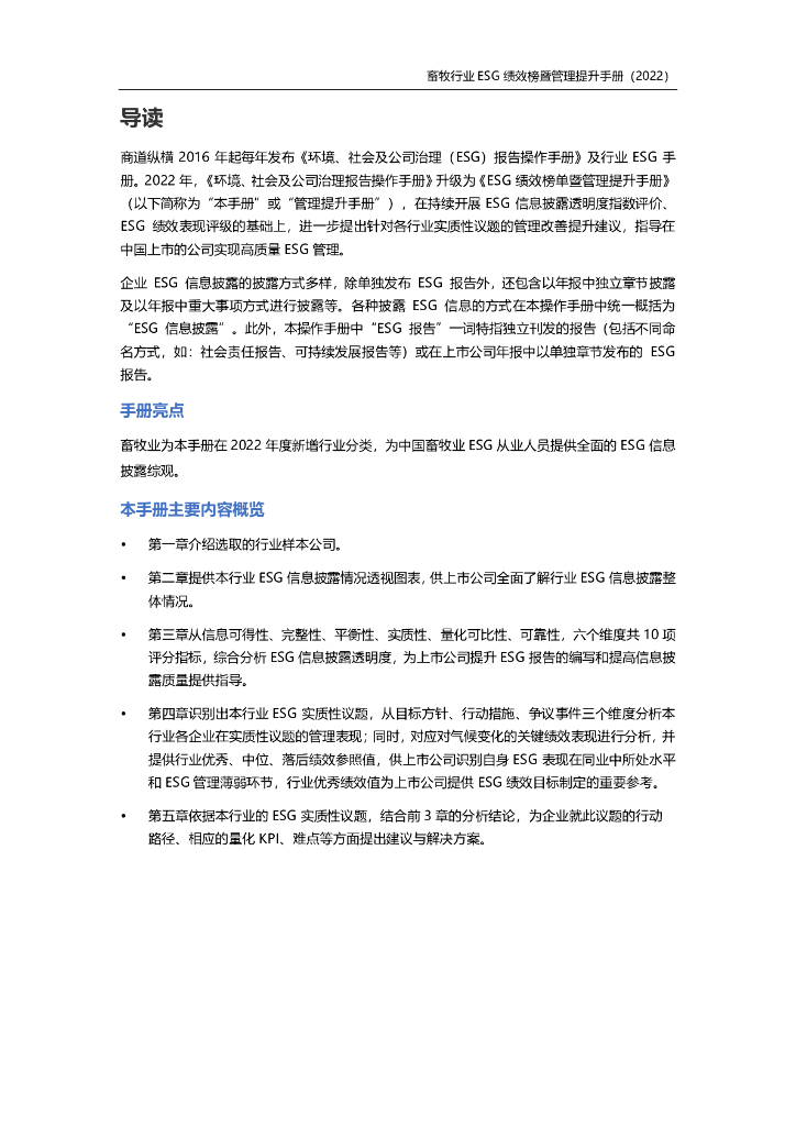 商道纵横:畜牧业ESG绩效榜单暨管理提升手册(2022年版).pdf