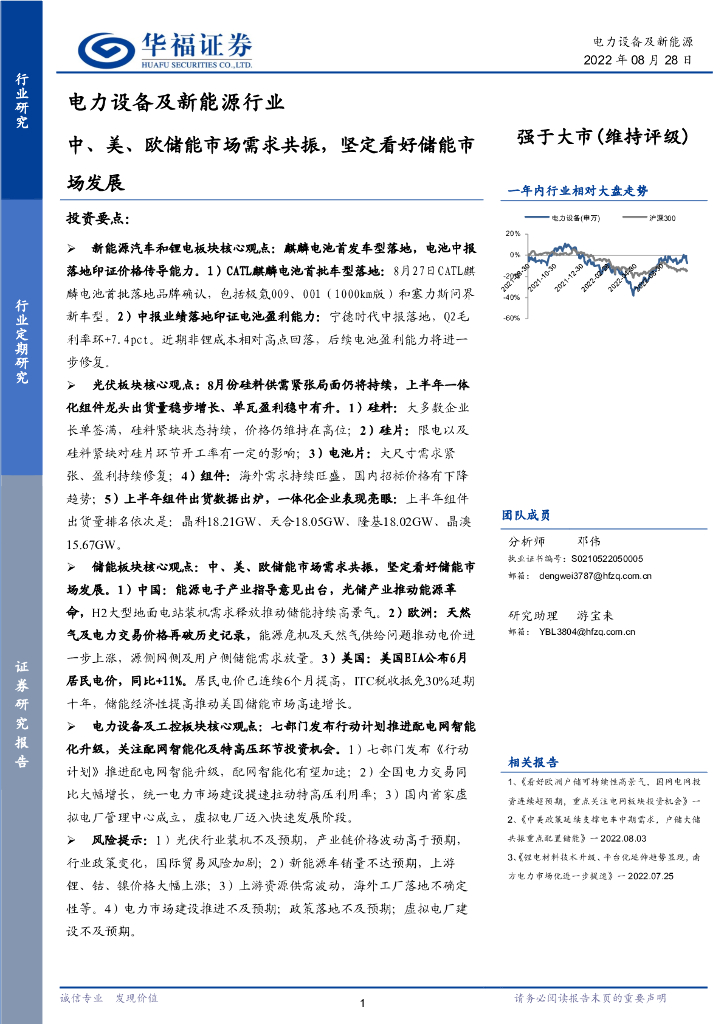 华福证券:电力设备及新能源行业:中、美、欧储能市场需求共振,坚定看好储能市场发展.pdf