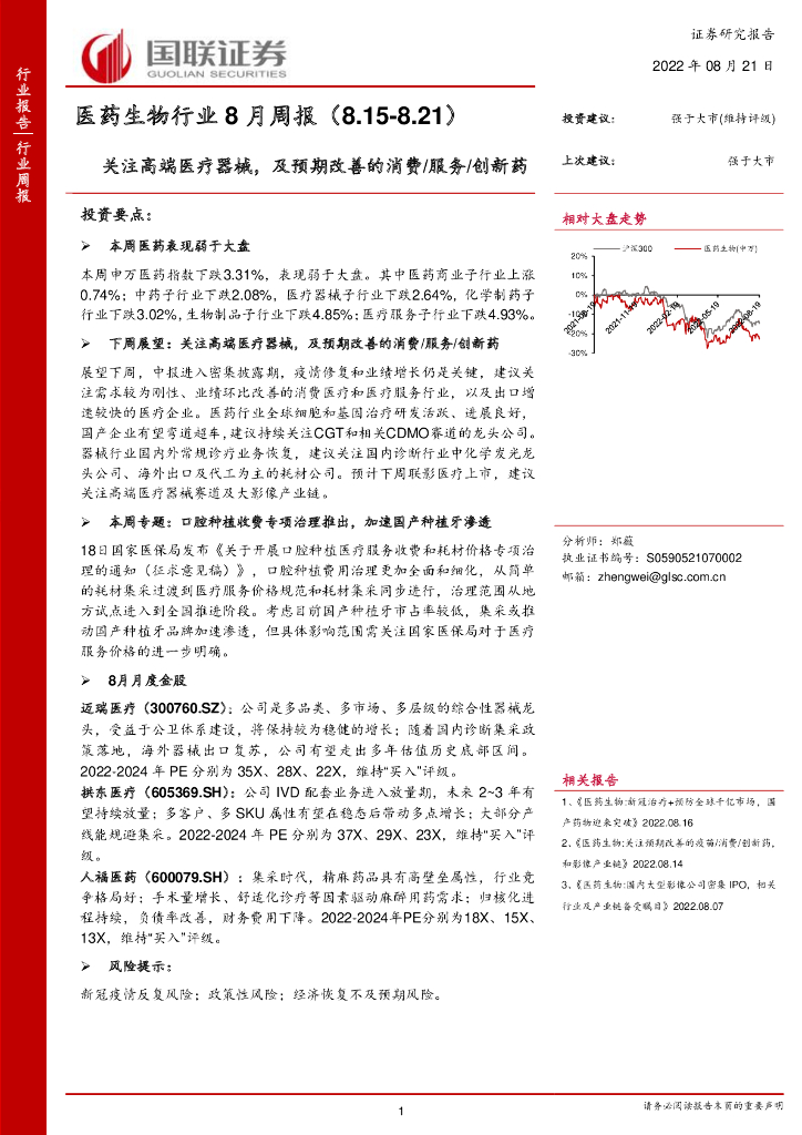 国联证券:医药生物行业8月周报:关注高端医疗器械,及预期改善的消费/服务/创新药.pdf