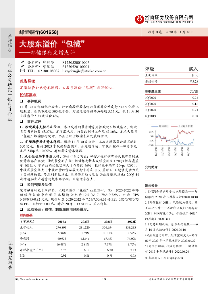 浙商证券:邮储银行定增点评:大股东溢价“包揽”.pdf