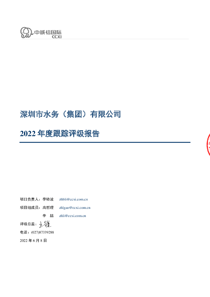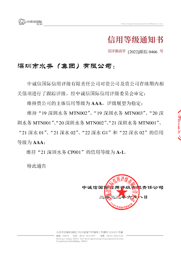 中诚信:深圳市水务(集团)有限公司2022年度跟踪评级报告.pdf