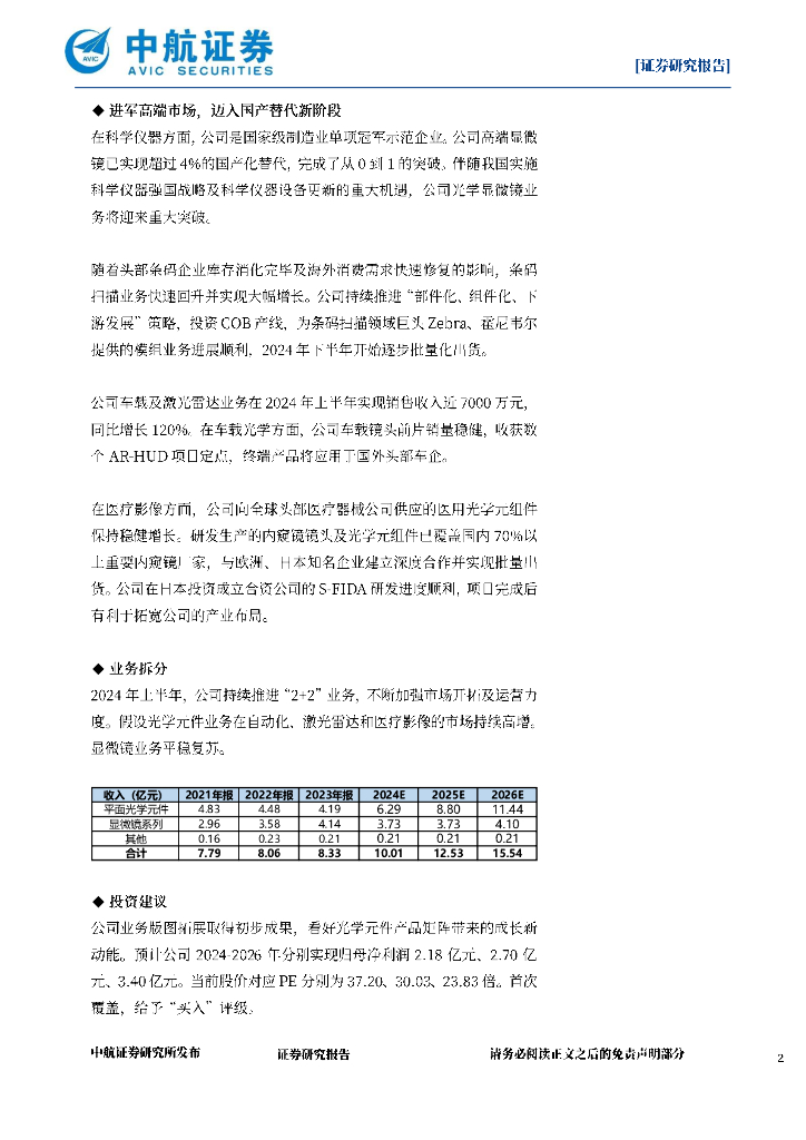 中航证券:永新光学(603297)-光学产品放量,迈入国产替代新阶段.pdf