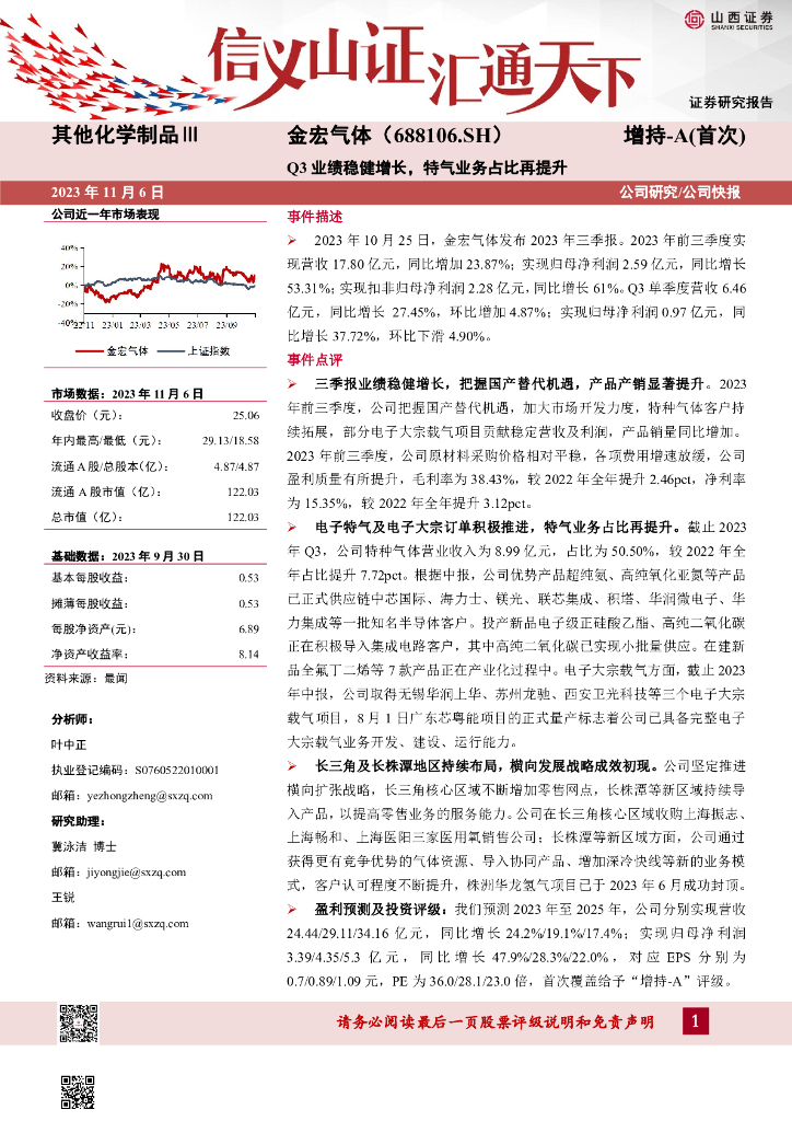 山西证券:金宏气体(688106)-Q3业绩稳健增长,特气业务占比再提升.pdf