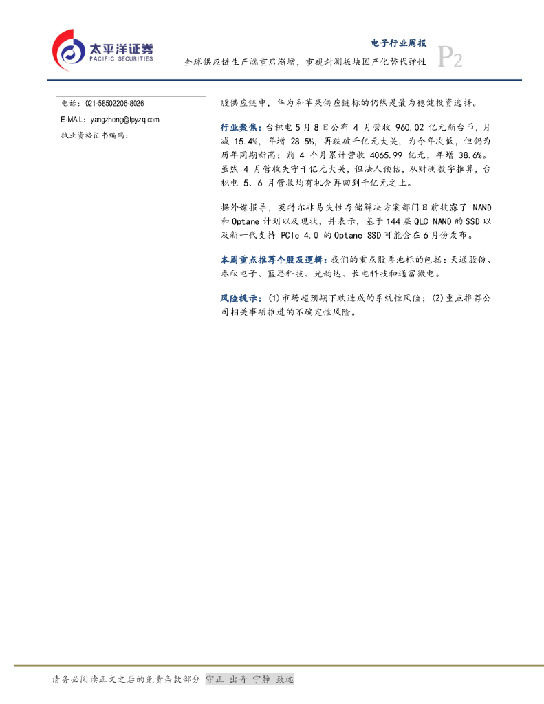 太平洋证券:电子设备、仪器和元件行业周报:全球供应链生产端重启渐增,重视封测板块国产化替代弹性.pdf