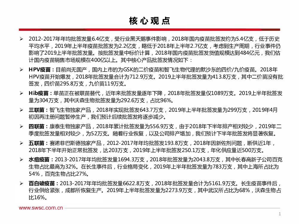 西南证券:2019年上半年疫苗批签发总结:行业正逐步恢复,核心重磅品种持续放量.pdf