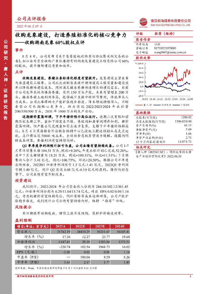 东亚前海证券:唐人神(002567)-收购湖南龙象60%股权点评:收购龙象建设,打造养殖标准化的核心竞争力.pdf