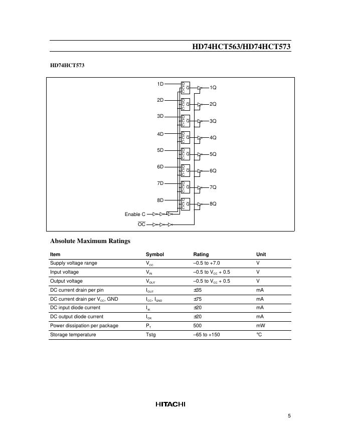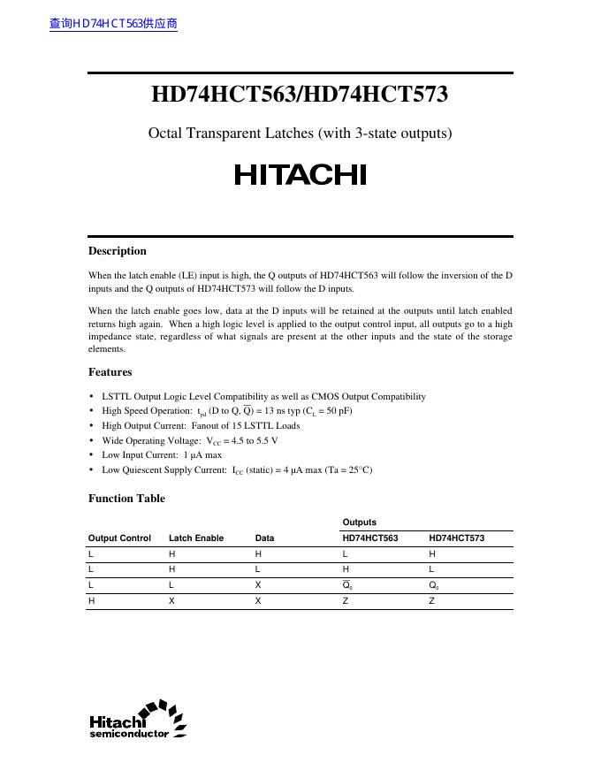 HITACHI HD74HCT563/HD74HCT573 Octal Transparent Latches (with 3-state outputs) 数据手册.pdf