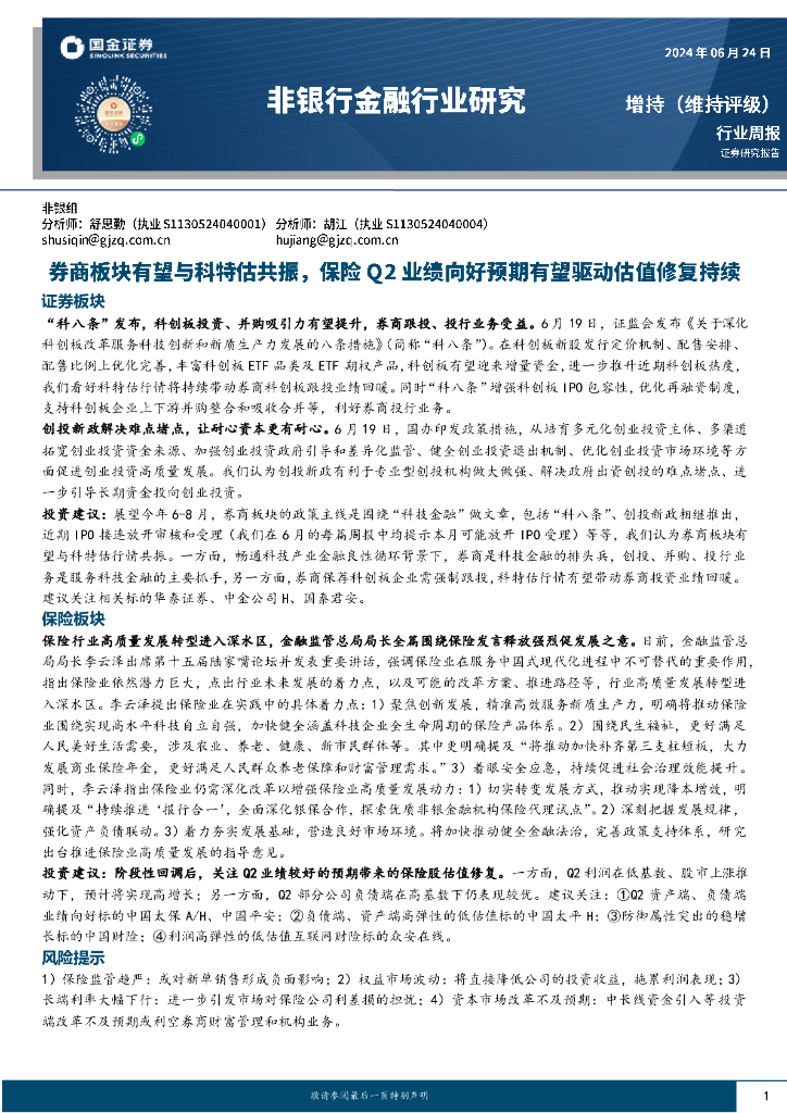 国金证券:非银行金融行业研究周报:券商板块有望与科特估共振,保险Q2业绩向好预期有望驱动估值修复持续.pdf