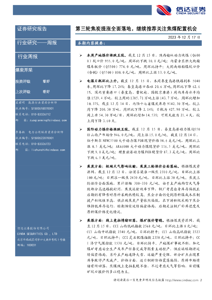 信达证券:煤炭开采:第三轮焦炭提涨全面落地,继续推荐关注焦煤配置机会.pdf