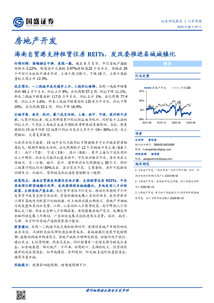 国盛证券:房地产开发行业周报:海南自贸港支持租赁住房REITs,发改委推进县城城镇化.pdf