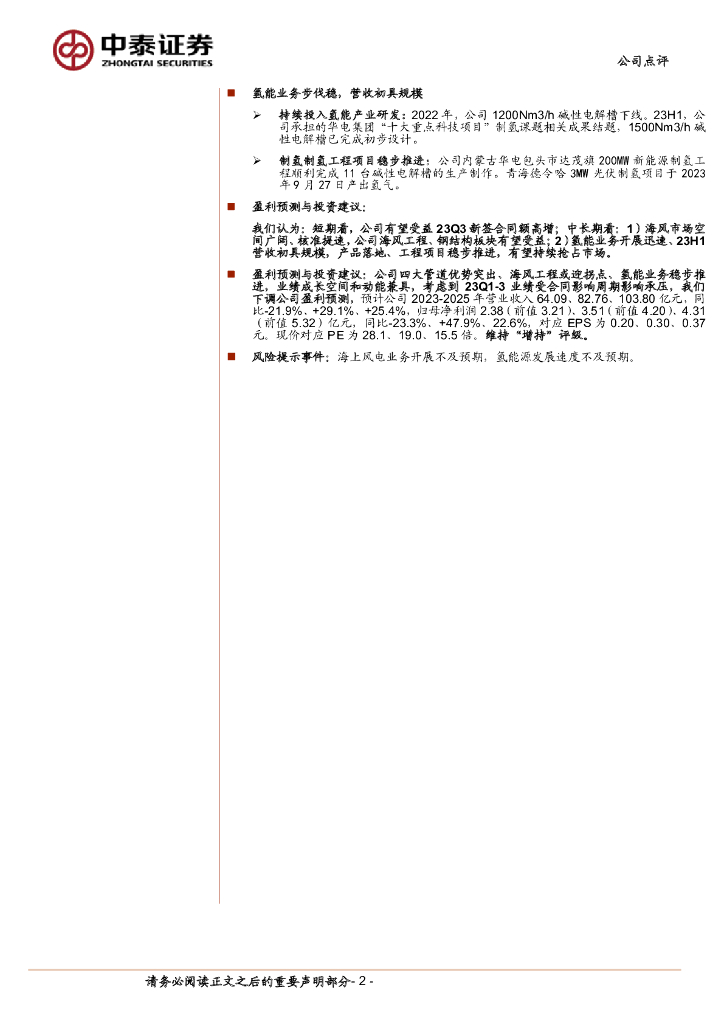 中泰证券:华电重工(601226)-2023年Q3报告点评:23Q3业绩承压,毛利率修复、现金流改善.pdf