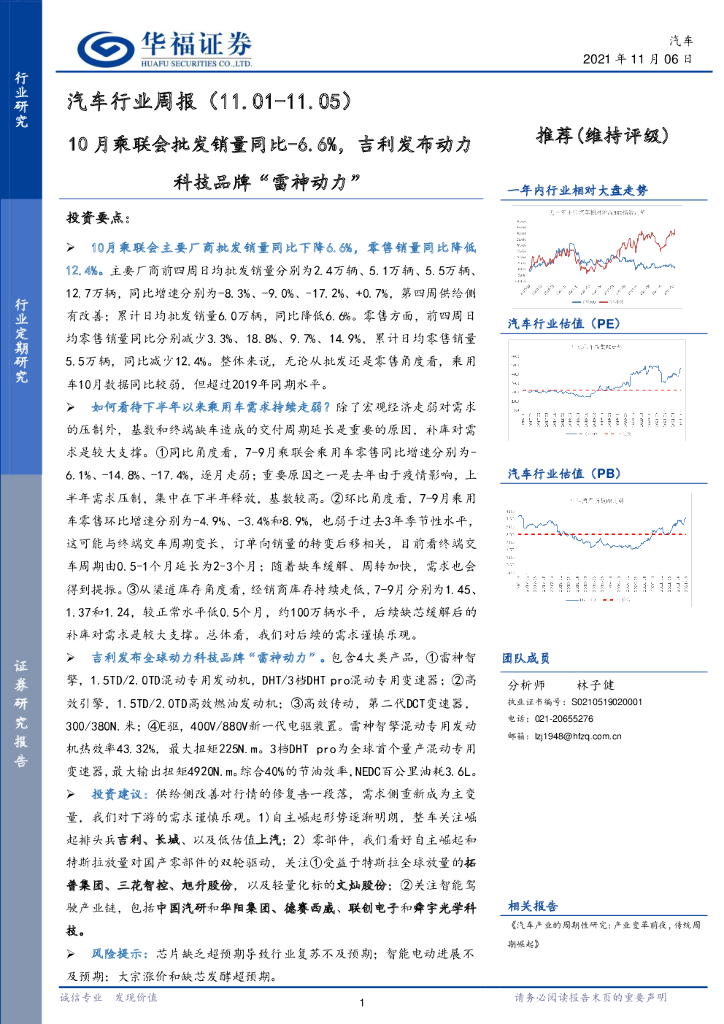华福证券:汽车行业周报:10月乘联会批发销量同比-6.6%,吉利发布动力科技品牌“雷神动力”.pdf