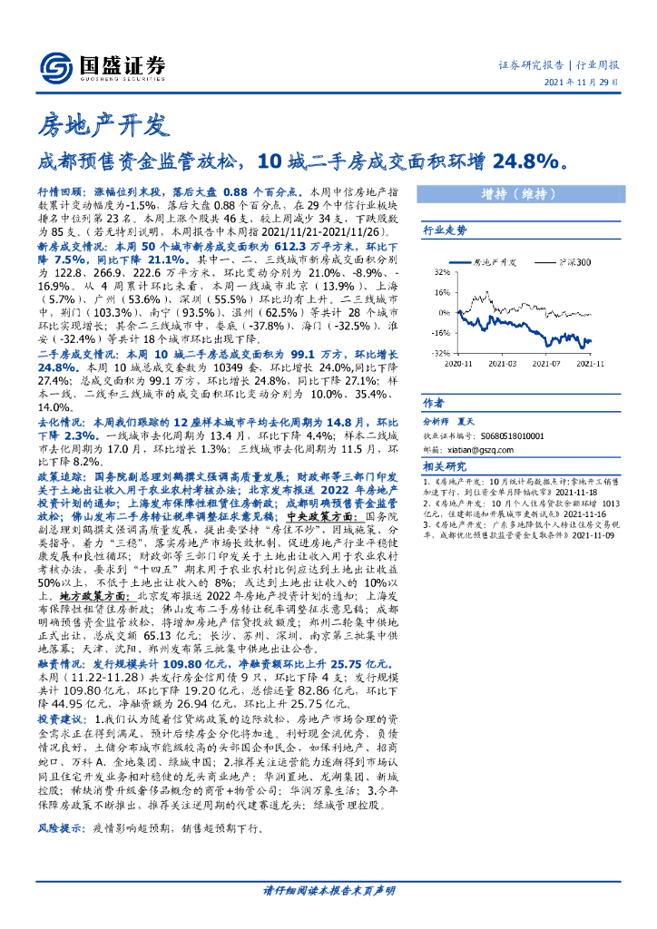国盛证券:房地产开发行业周报:成都预售资金监管放松,10城二手房成交面积环增24.8%。.pdf