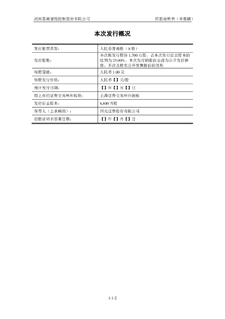 河南嘉晨智能控制股份有限公司上交所科创板IPO上市招股说明书.pdf