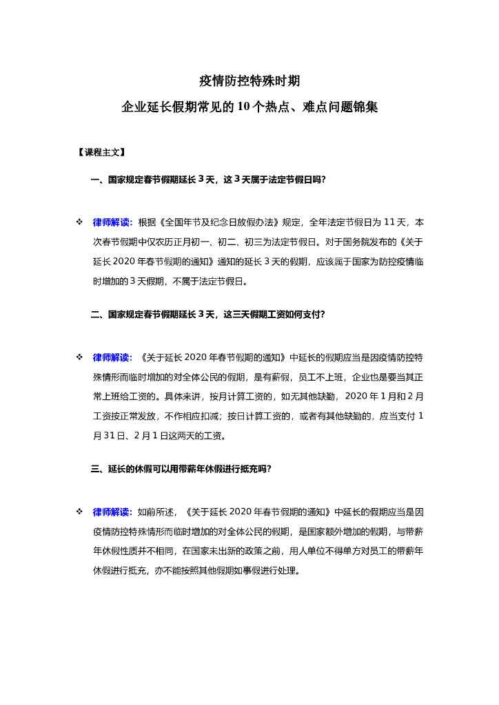 疫情防控特殊时期企业复工难点问题锦集.doc