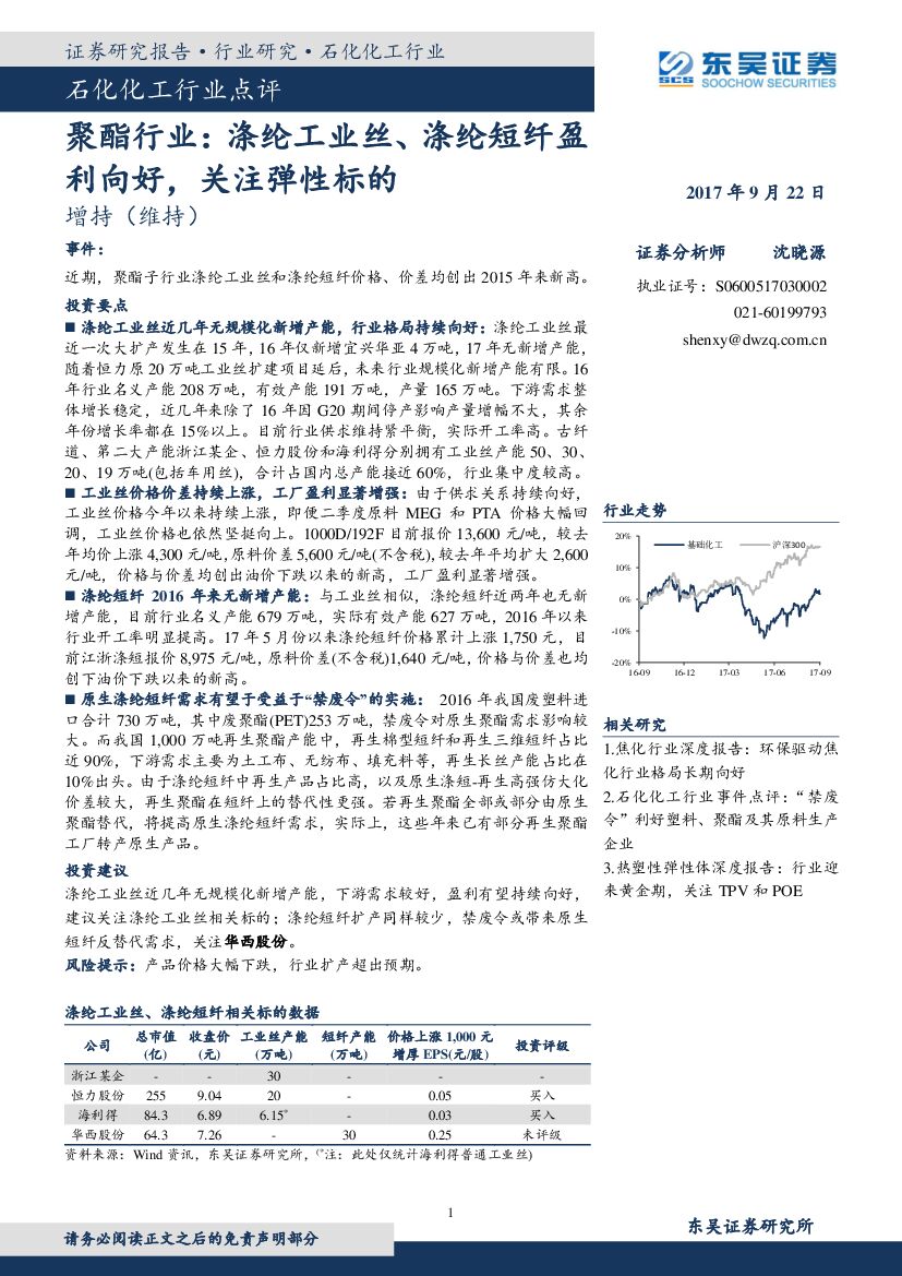 东吴证券:聚酯行业:涤纶工业丝、涤纶短纤盈利向好,关注弹性标的.pdf