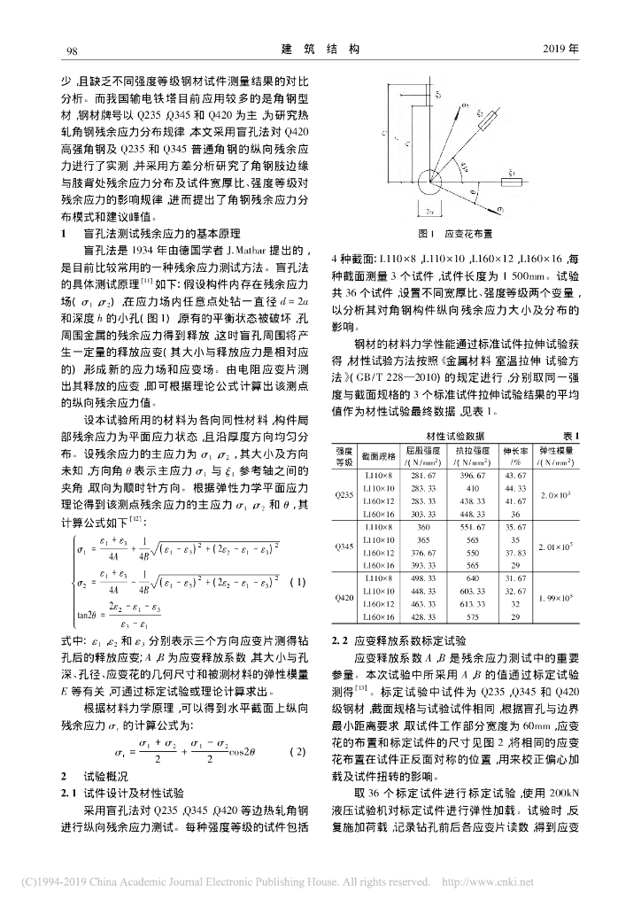 盲孔法测量热轧角钢截面残余应力及方差分析.pdf