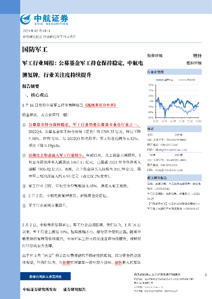 中航证券:军工行业周报:公募基金军工持仓保持稳定,中航电测复牌,行业关注度持续提升.pdf