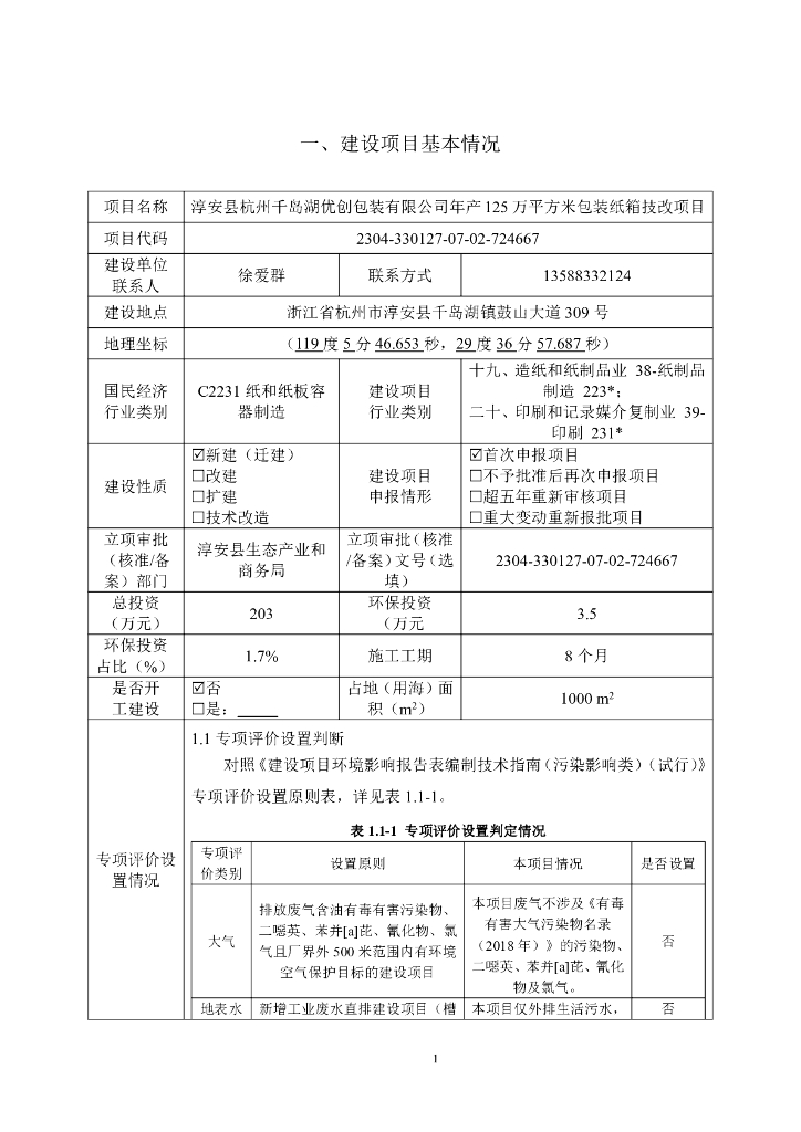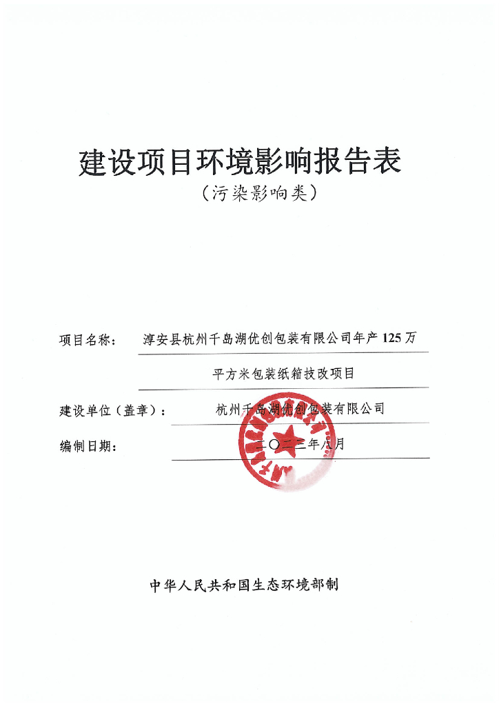 亭安县杭州千岛湖优创包装有限公司年产125万平方米包装纸箱技改项目建设项目环境影响报告表(生态影响类).pdf