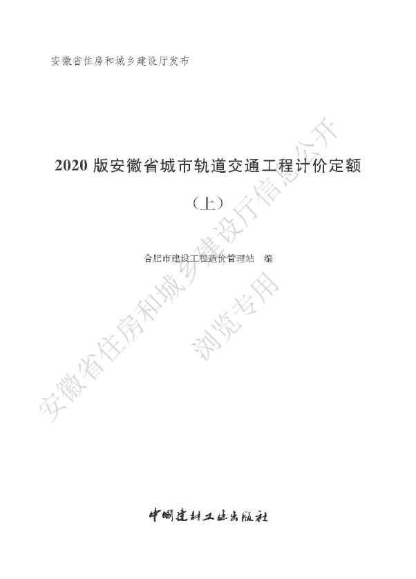 安徽省住房和城乡建设厅:2020版安徽省城市轨道交通工程计价定额(上册).pdf