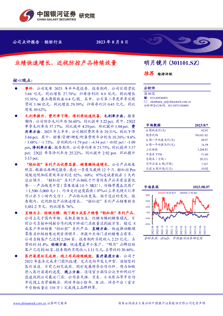 中国银河:明月镜片(301101)-业绩快速增长,近视防控产品持续放量.pdf