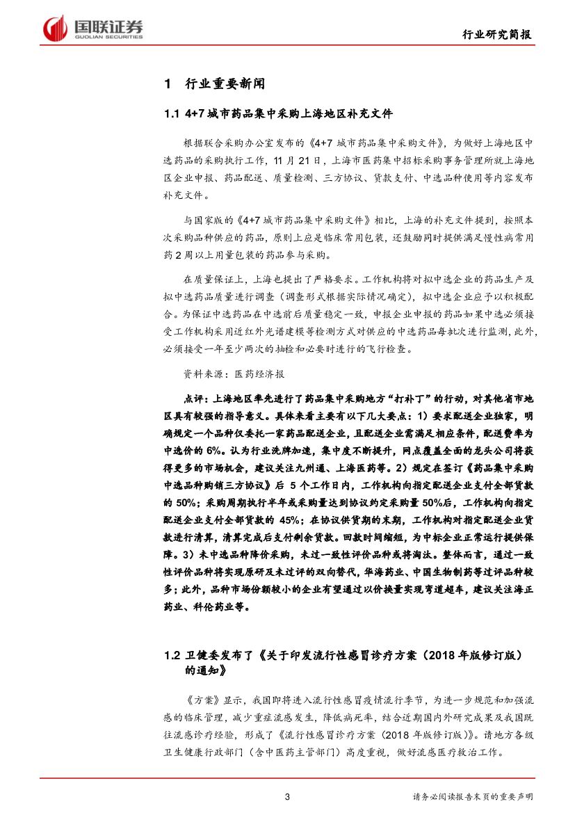 国联证券:医药生物行业:带量采购上海“打补丁”,关注流感季带来的投资机会.pdf