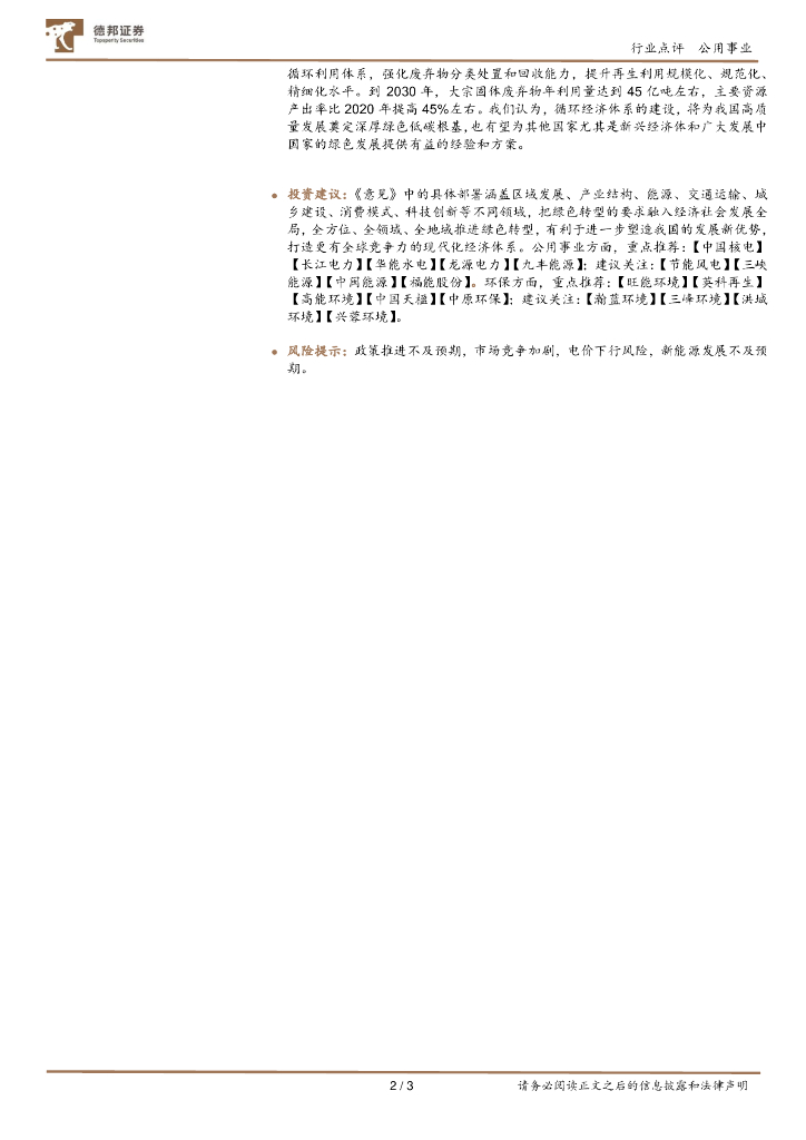 德邦证券:公用事业:国家层面首次对全面绿色转型进行系统部署,打造更有全球竞争力的现代化经济体系.pdf