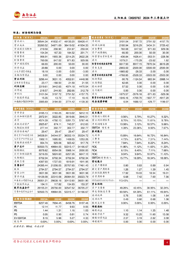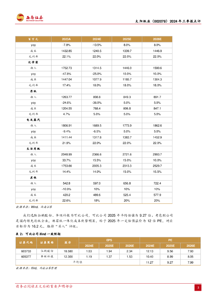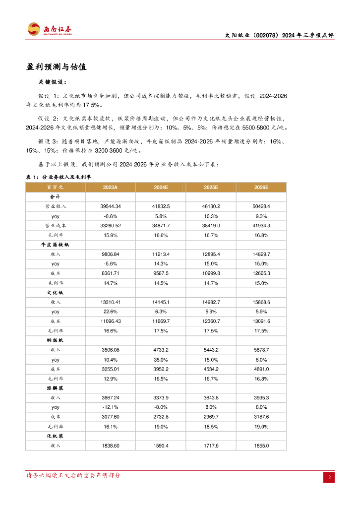 西南证券:太阳纸业(002078)-2024年三季报点评:毛利率周期波动,产能持续稳步扩充.pdf