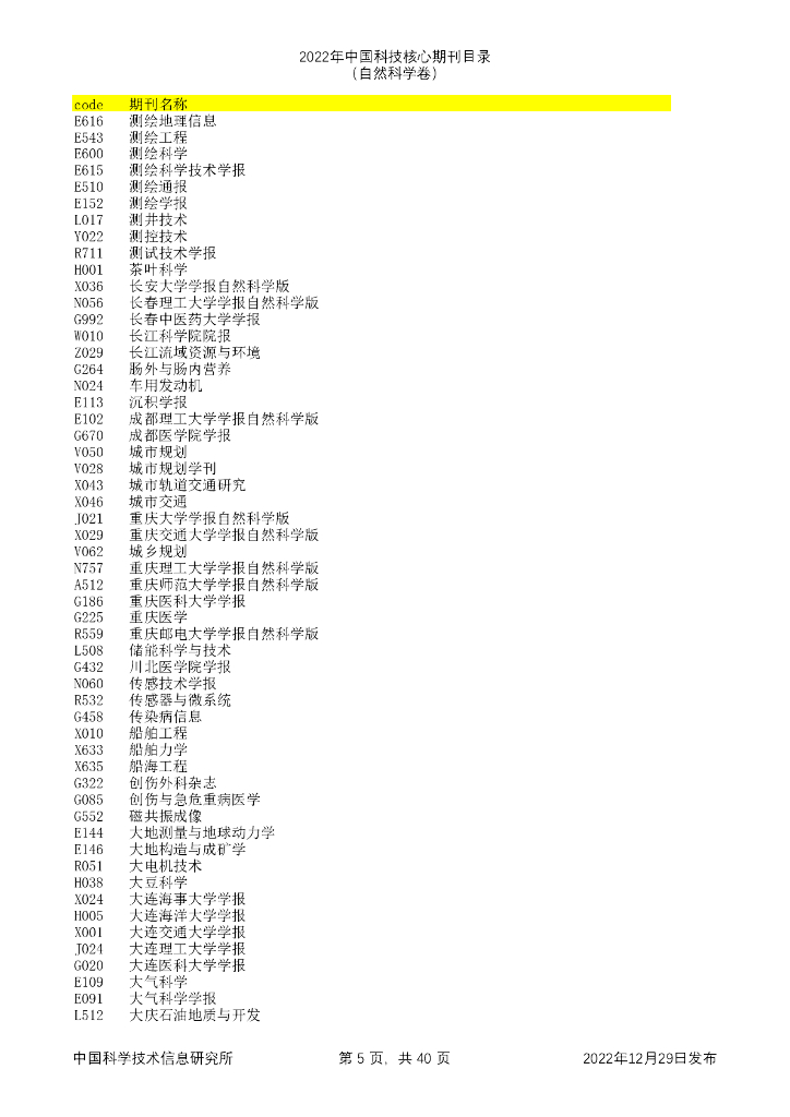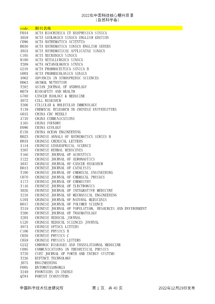 中国科学技术信息研究所:中国科技核心期刊目录(2022年自然科学卷).pdf