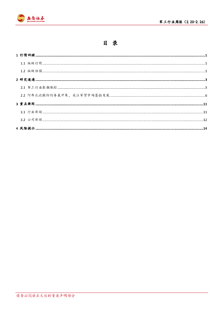西南证券:军工行业周报:阿布扎比国际防务展开幕,关注军贸第二增长曲线.pdf