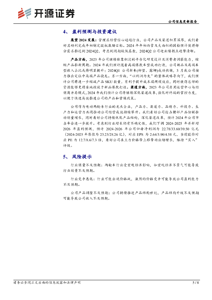 开源证券:爱玛科技(603529)-公司信息更新报告:2023业绩稳增,2024看好产品量价持续提升.pdf