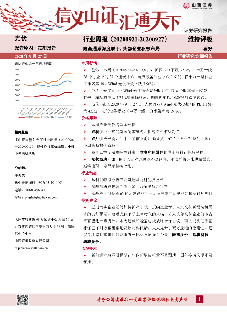 山西证券:光伏行业周报:隆基通威深度联手,头部企业积极布局.pdf