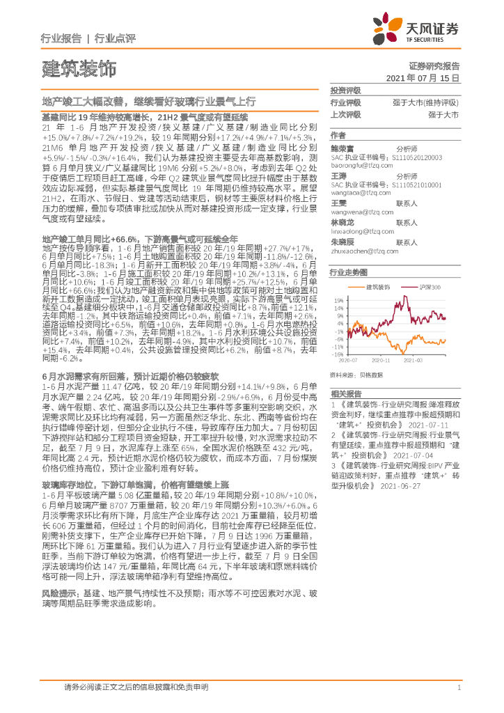 天风证券:建筑装饰行业点评:地产竣工大幅改善,继续看好玻璃行业景气上行.pdf